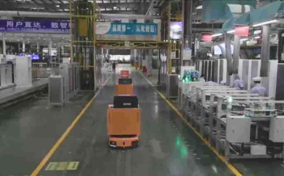 为车载冰箱物流配送打造的智能解决方案,,包含产中物流通过潜伏举升AMR搬运至线边,,产后成品物流智能仓储,,,流程包含产中物流智能齐套入库,,线边安灯叫料AMR智能配送至线边,,成品入库、、、、出库,,通过无人堆高车机器人,,,,智能仓储管理替代人工作业管理,,,实现更高存储、、、更高效率、、、更具柔性化的解决方案。。。